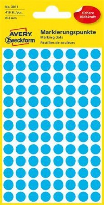 Etikett, 8 mm, kör, AVERY ZWECKFORM, kék, 416 etikett/csomag