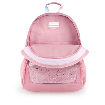 Hátizsák, iskolatáska, cipzáras, GABOL "Glam", rózsaszín csillámos